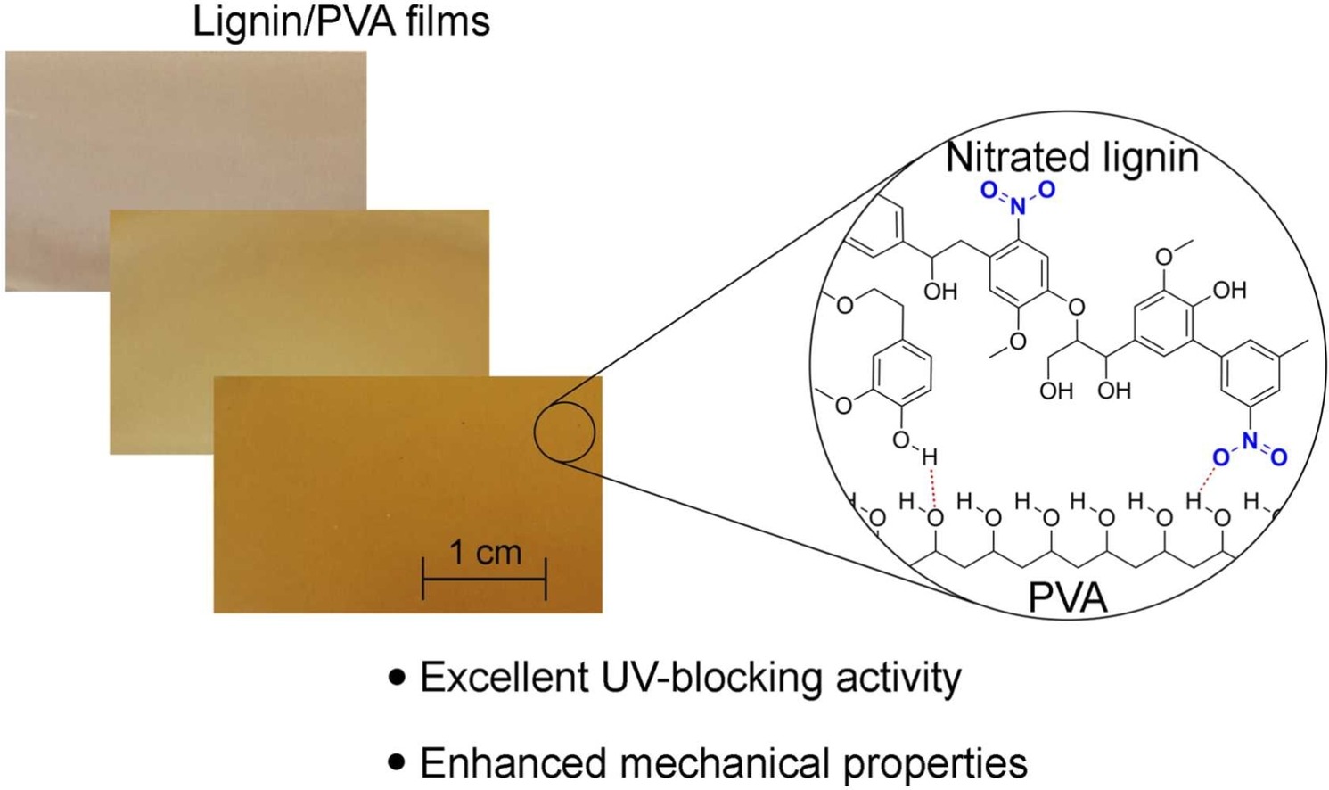 Nitrated lignin-reinforced polyvinyl alcohol composite films with enhanced optical and mechanical properties