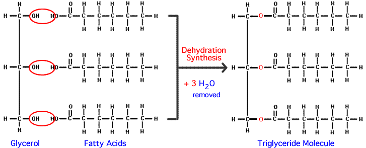 콩기름의 경우 대부분 지방산 세 개가 다음과 같다: 알파리놀렌산(α-linolenic acid), 리놀렌산(linolenic acid), 그리고 올레인산(oleic acid). 굉장히 혼란스럽겠지만, 각각의 모두 18개이다. 따라서 콩기름의 주성분은 탄소가 18+18+18+3=57 개로 구성된 거대한 분자이다. 그럼에도 이것은 고체가 아니다! 도대체 어떻게 이런 일이 가능한 것인가? 원인은 탄소간 결합에 있다.