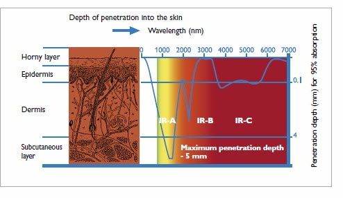 게다가 원적외선이 인체에 가장 유익한 파장이라고 입증되었다고 하는데 전혀 그런 결론은 확인된 바 없다. 특별히 원적외선의 인체 효능을 주장하는 많은 사람들의 이론에 따르면 원적외선은 피부 속 깊이 침투하여 물 분자 진동을 유도한다고 한다. 하지만 이것은 터무니없는 주장이다. 공기를 통해 전달되는 전자기파가 피부를 만나게 되면 필연적으로 반사되던지 혹은 투과를 하게 된다. 그런데 기체 분자들로 가득한 공기와는 달리 인체는 온갖 공유결합으로 결합된 생체 고분자(피부)와 활발히 순환하는 액체 분자(체액)로 가득 차 있는 매질이다. 따라서 피부로 입사된 원적외선은 피부 내로 투과함과 동시에 수많은 인체 분자들과 상호작용하게 되고 이 가운데 대부분의 원적외선들은 산란 혹은 흡수되어 에너지를 잃게 된다. 이를 감쇠(attenuation)라고 부르는데, 이 광고의 영상과는 달리 파장이 긴 원적외선의 경우 피부 표면으로부터 0.2 mm 이내의 지점에서 이미 감쇠가 다 진행되어 에너지가 0이 되어 버린다는 것이 이미 잘 알려져 있다. 그렇다면 피부 표면으로부터 0.2 mm 이내의 지점엔 뭐가 있는가? 슬프게도 그것은 각질(角質)이다. 각질만을 따뜻하게 데우고 싶거든 원적외선의 집중포화를 받으라! 반면, 이 영상 제작자는 '일반 열'이라는 개념 자체를 모른다. 오히려 이 사람들이 생각하는 '일반 열'에 해당하는 근적외선 혹은 적외선의 경우 피부 표면으로부터 수 mm 이상 투과할 수 있다.