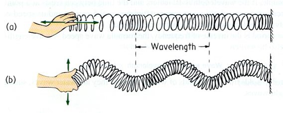 양쪽을 고정시킨 줄이 어떠한 이유로 인해 정상파를 형성하였다고 생각해보자. 파동은 에너지를 전달하는 현상이라고 했는데 정상파는 위와 같은 제한 조건에 갇혀 더 이상 확산되지 못하는 파동이므로 에너지를 계속 보유하게된다. 따라서 아주 이상적인 실2이 진공 중에서 떤다면, 그 정상파는 세상 끝날때까지 그 자리에서 영원이 떨게 될 것이다. 그러나 현실 세계에서는 이런 일이 발생하지 않으며, 무엇보다도 가장 중요한 것은 정상파 주변으로 충만하게 공기가 존재한다는 것이다. 정상파로 인해 요동치는 실은 주변에 있는 공기를 자신과 같은 진동수로 요동시키게 되는데 이를 통해 공기에도 정상파를 유도시킨다. 어떻게? 실이 바깥으로 밀리면 공기도 바깥으로 밀어내어 갑자기 공기의 밀도가 높아진다. 실이 이제 안쪽으로 당겨지게 되면 공기도 안쪽으로 당겨내어 이제 공기의 밀도는 낮아진다. 즉, 공기의 밀도가 높아졌다 낮아졌다를 반복하게 되는 것이다. 이것은 횡파(橫波, transverse wave)인 실의 떨림과는 전혀 다른 형태의 파동인 종파(縱波, longitudinal wave)이다. 아무튼 실의 떨림은 공기의 떨림으로 전이되었으므로 정상파의 에너지는 작아지게 되는 대신에 에너지의 상당수가 공기를 통해 이제 퍼져나가기 시작한다.