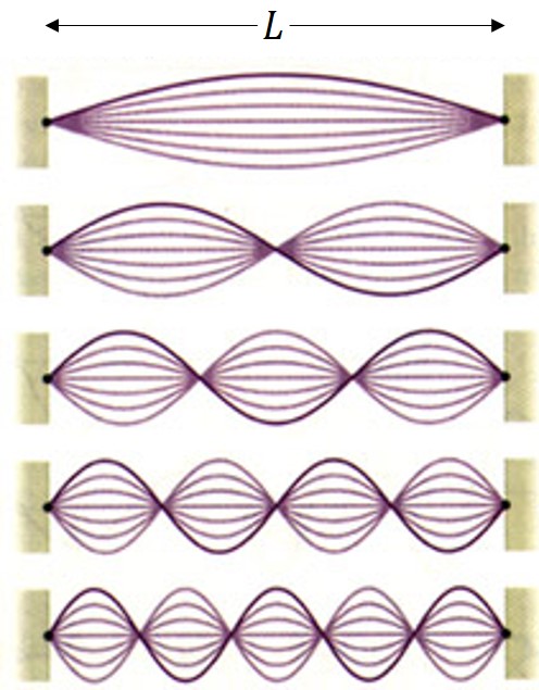 그런데 위의 조건들을 보면 1:2, 2:3, 3:4, 4:5, 5:6 이런 숫자를 보이는 것이 여간 희한한 것이 아니다. 신토닉 콤마를 해결한 것이 정말 우연한 산수 계산에서 비롯된 발견이었을까? 우리는 지난 4편에서 현에 정상파가 형성되면 수많은 배음들이 발생한다는 것을 살펴보았고, 정상파들의 진동수는 모두 기음 진동수의 정수배임을 확인했었다.