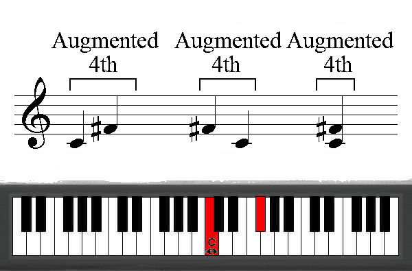 한편 완전음정은 음정 간격이 반음씩 늘어나면 증(增, augmented)이라는 이름을 앞에 붙이고 반대로 반음씩 줄어들면 감(減, diminished)이라는 이름을 앞에 붙이는데, 평균율에서는 딴이름한소리 원칙에 따라 감4도는 장3도와 동일하고, 증5도는 단6도와 동일해진다. 그러면 완전음정도 아니고 장단음정도 아닌 음이 딱 하나 남게 된다. 바로 그것은 증4도(augmented fourth) 혹은 감5도(diminished fifth).