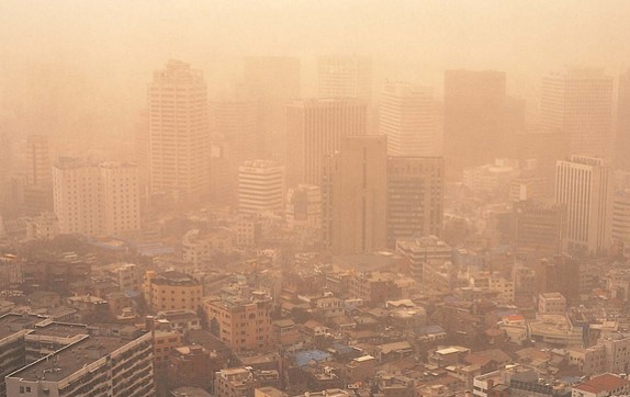 고체-기체 분산액은 대한민국에서 봄마다 자주 볼 수 있다. 바로 미세먼지, 황사(黃沙), 연무(煙霧)가 그것이다. 이들 입자의 크기는 수~수십 μm 이며 대기라는 분산매에 퍼져 있는 아주 유해한 현탁액이다.10 이런 유해한 현탁액이 불투명하다는 것은 굳이 설명하지 않아도 불편하게 머릿속에서 그려질 것이다. (사실 이런 현탁액을 코로 늘 들이마셔야 한다는 사실이 굉장히 슬픈 일이다.)
