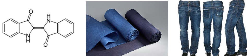 인디고는 쪽과 같은 천연 식물로부터 얻을 수 있는 가루 물질로 굉장히 강한 파란색을 띠는데, 스승보다 더 나은 제자가 나온다는 청출어람(靑出於藍)이란 말이 쪽보다 더 푸른 인디고의 쪽빛에서 비롯된 말이다. 이 인디고 염료가 쓰이는 가장 보편화 된 제품 중 하나가 바로 우리 모두 옷장에 한 벌쯤은 가지고 있는 청바지가 되겠다. 전세계에서 만들어지는 청바지의 숫자만 상상해보더라도 인디고 염료가 현대 패션 산업에서 차지하는 비중이 엄청나게 크다는 것을 실감할 수 있을 것이다. 이 인디고는 물이나 알코올에는 잘 녹지 않으나 다이메틸설폭사이드(dimethylsulfoxide), 클로로폼(chloroform)과 같은 유기 용매에는 잘 녹는다.