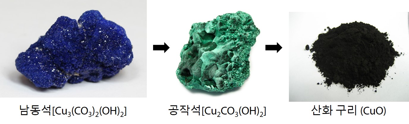 이집션 블루를 더 이상 합성할 수 없는 상황에서 유럽 사람들은 자신들의 땅에서 산출되는 자연 광물로부터 파란색 안료를 얻어야만 했다. 다행히도(?) 유럽에는 남동석(藍銅石, azurite)이 있었고, 사람들은 이것을 이용해서 파란색 안료를 만들었다. 남동석의 화학식은 Cu3(CO3)2(OH)2으로, 이름에서 알 수 있듯이 ㅡ 군청색(群靑色)을 의미하는 남(藍)과 구리를 의미하는 동(銅)이 조합된 이름 ㅡ 짙은 파란색을 띠는 구리 화합물이다.